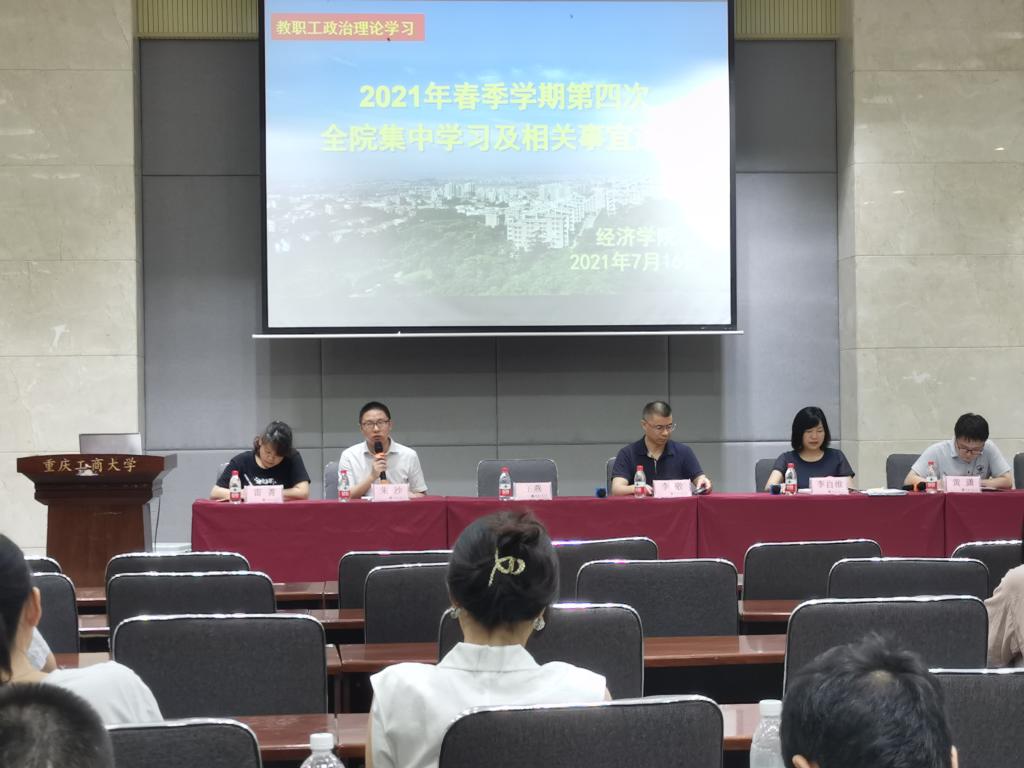 会议伊始,公司党委书记李自维对公司本学期工作作了全面总结,重点阐述了党建、教学、科研、员工工作等方面的亮点和成绩,对大家的辛勤付出表示诚挚的感谢。她强调公司党委、教师的政治理论学习仍需加强,不断深入学习党史学习教育,并做好学习教育向为群众办实事的成果转化。接着,教学副经理朱沙从一流课程建设及一流专业建设等方面进行了回顾,并对下学期相关工作做了重点部署及安排。黄潇副经理带领全体教职工学习了习近平总书记的重要讲话精神,他要求各位老师一定要认真学习,深刻领会,把重要指示、相关文件、会议精神贯彻到自己的工作中。王燕副书记从伟德国际bevictor1946就业工作、经济论丛、员工三下乡实践活动等方面展开介绍,同时告知员工工作主要工作节点,提醒相关老师做好相应准备。