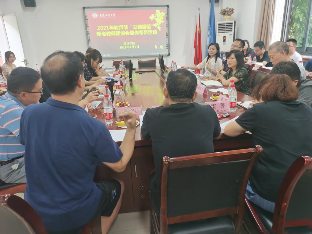 随后,新教师们进行了自我介绍,大家围绕师德师风、公司产品及人才培养等方面进行了热烈的讨论。长江学者谢新教授谈到经济学发展快速,是前沿学科,应多结合实务,开展教学与科研。公司督导专家刘成杰教授以自身经历语重心长地阐述了三点,一是遵守教学制度是教师的底线,二是处理好教学与科研的关系,三是认真学习职称文件,文件精神是一种导向,有利于激励我们奋发图强。公司督导杨军副教授则从教学督导的角度出发,为青年教师提出“上好课”的基本标准与要求,帮助青年教师厘清了自己走上三尺讲台的首要任务。重庆市教指委委员尚可文教授分别从如何处理好教材与教学、教书与教课、教材语言与教学语言三方面的关系传授了自己宝贵的教学经验,将艰深难懂的教学理论娓娓道来,让在座的教师如沐春风,受益匪浅。公司王燕副书记以就业为主线,从真心、恒心、诚心、爱心、耐心五个点勉励青年教师找准个人定位,坚持不懈,努力进取。重庆市教指委委员朱莉芬教授表示新老教师应相互交流、相互学习、共筑成长。青年教师代表郭鹏飞也在座谈交流中发言,大家纷纷对老教授们的谆谆教诲表示感谢。