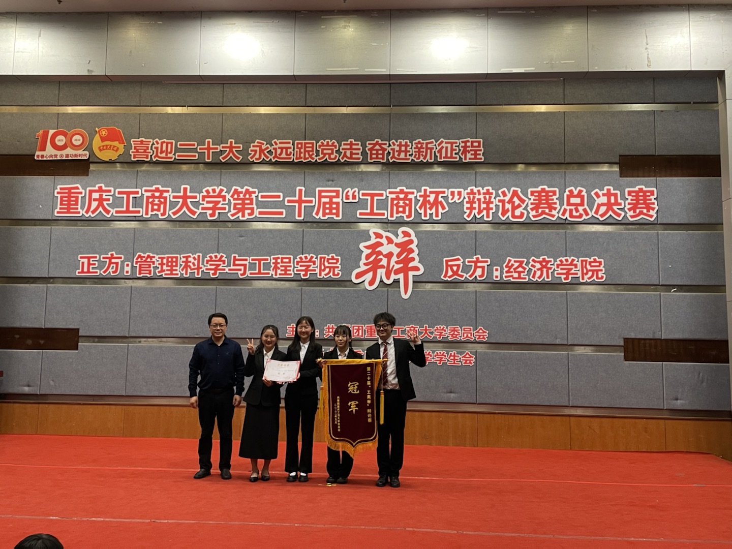 比赛中,公司辩手持之有故,说之有理,洞察缺漏,逻辑明晰,于妙语连珠之间,慷慨陈词之际,展示出科学思辨的青春风采,赢得在场观众一片掌声。经过精彩的陈词和激烈的交锋,伟德国际bevictor1946辩论队最终以4比1的比分赢得比赛,摘得第二十届工商杯辩论赛冠军桂冠!同时,公司辩手张栩焓也凭借其全程的优秀表现,获得了“优秀辩手奖”,为他在工商大学四年的辩手生涯画上了圆满的句号。