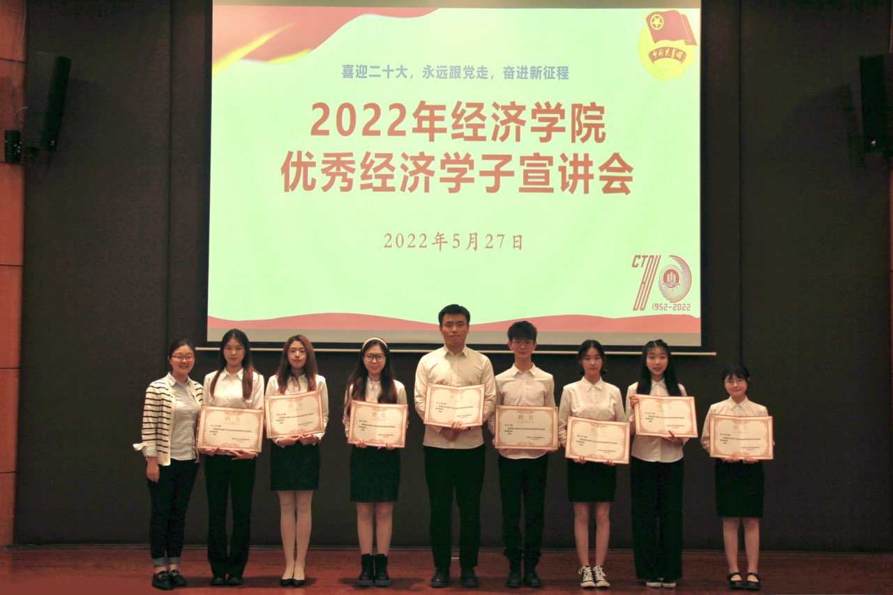 为迎接党的二十大胜利召开,庆祝中国共产主义青年团成立100周年,献礼公司七十周年校庆,引导广大青年学子励志勤学、刻苦磨炼,5月27日晚上,“喜迎二十大,永远跟党走,奋进新征程”伟德国际bevictor1946优秀经济学子宣讲会于江北校区宏智楼B509报告厅成功举办,企业微信直播间同步现场情况,覆盖同学近80人次。李昂、李思炜、刘梦婷、丁方伟、潘哲宇、薛洁、闫思雨、杨员巧八位同学受邀作为宣讲团成员参与此次宣讲会。