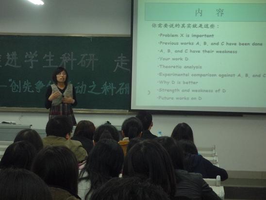 随着08、09级同学科研论文写作的必要性日益突出,也为了能够更好地推进员工科研工作,带领更多同学走近学术领域,北6、北21党员服务站在“创先争优”精神的引导下于11月17日晚上7点在田家炳407教室为同学们送去了一场高质量的科研论文指导会。北6党员服务站指导老师郝颖和产业经济学2008级研究生刘斌、王殿颖先后站上讲台为同学们授业解道。