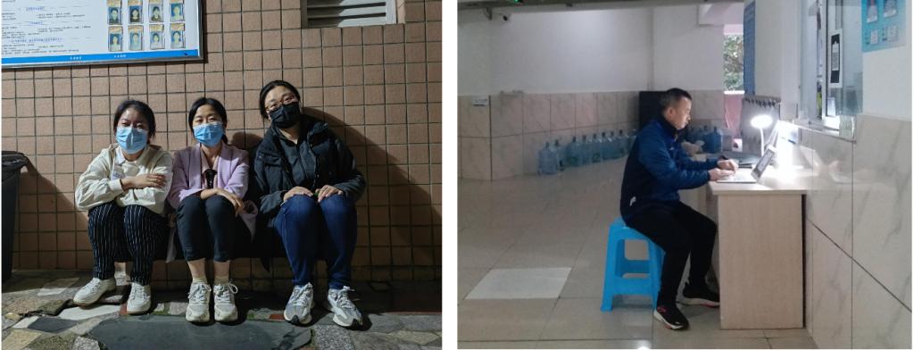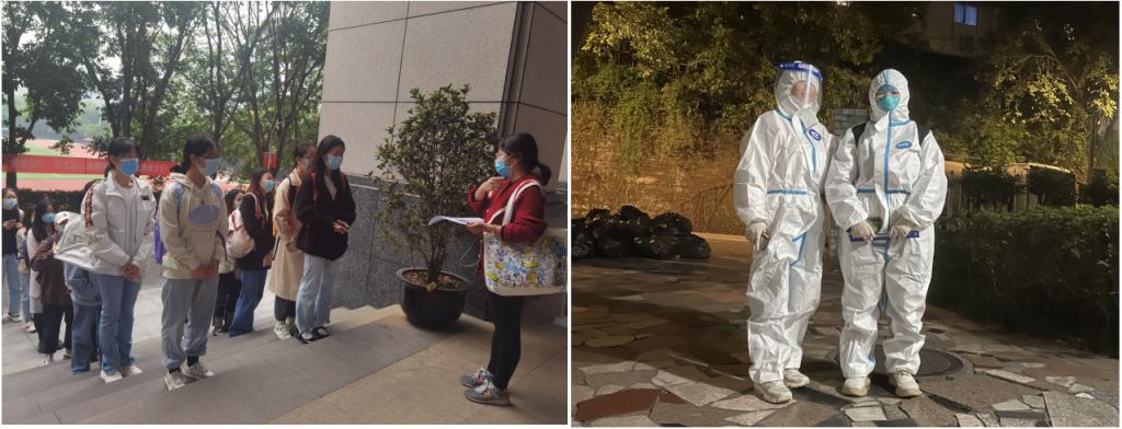 在忙碌之余,辅导员们通过手机及时查看回复员工消息,关心着同学们的网课学习情况、思想动态和心理状态,安抚和疏导同学们的情绪,传递关怀和温暖。为了不耽误考研同学的备考进度,辅导员们有序组织员工进图书馆取回书籍,帮助同学们解决燃眉之急。有同员工病发烧,辅导员邓雪霜立刻换上防护服,在深夜一路陪伴员工就医。无论清晨还是夜晚,员工公寓楼下都有辅导员们坚守的身影。他们是负责的老师,是贴心的朋友,是最温暖的守护者。