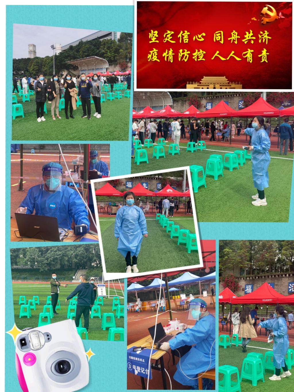 为确保核酸检测有序开展,辅导员们化身成为“检察员”,套上防护服深入员工宿舍“扫楼”,督促每一位员工按时完成核酸检测,确保应检必检,不漏一人。在长长的核酸检测队伍前,他们不辞辛劳、反复强调注意事项。“各位同学,为了你的生命健康以及落实相关疫情防控要求,请保持一米的安全间距,谢谢你的配合。”辅导员杨华俊、张涛自制创意“小蜜蜂”,在员工核酸检测队伍前循环播放注意事项,有声的守护传递着温暖力量。