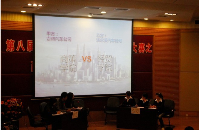 此次比赛采取车轮战方式,比赛一开始,烽火就被迅速点燃。各公司代表队双方均先以声情并茂的背对背演讲展示对谈判的前期调查结论、案例理解、切入点和策略,提出谈判所希望达到的目标。正式谈判中,首轮旅游与国土资源公司VS机械工程公司的比赛,作为甲方的旅游公司代表队选手凭借敏捷的思维、高超的谈判技巧使得乙方不得不退让妥协达成最终的共识;经贸公司VS商务策划公司,双方无论是从谈判准备、谈判过程都不相上下,唇枪舌剑,寸利不让,最终商策公司以1.8分的微弱差距惜别决赛;在财金公司VS文新公司的谈判过程中,双方选手镇定自若,反应敏捷,通过各种丰富的资料极力维护各自利益,最终财金公司脱颖而出。其后的决赛现场更是精彩纷呈,高潮迭起,最终由社会与公共管理公司与管理公司决出雄辩,双方代表就谈判题“xx公司索赔案”侃侃而谈,从容不迫,对谈判的核心问题进行深入谈判,并充分运用各种策略和技巧,以获得最大利益。 经过一个多小时的激烈的谈判,经过激烈的交锋和友好的协商,双方最终达成一份双赢的协议。