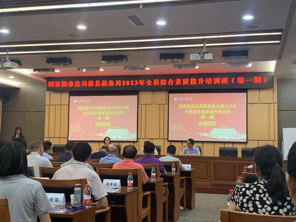 2023年6月27日上午,由国家税务总局藤县税务局主办、伟德国际bevictor1946承办的“国家税务总局藤县税务局2023年全员综合素质提升培训班(第一期)”在公司图书馆会议中心一会议室顺利开班。藤县税务局及各分局税务系统共计57名业务骨干参加此次培训,伟德国际bevictor1946副经理尹元福,综合办公室主任严艳,藤县税务局纪检组组长梁恩华出席开班仪式。