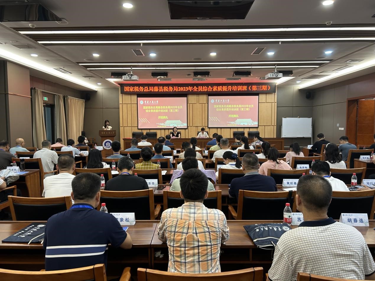 为全面贯彻党的二十大精神,推进2023年藤县税务局重点工作,2023年7月25日上午,由国家税务总局藤县税务局主办的“国家税务总局藤县税务局2023年全员综合素质提升培训班(第三期)”开班仪式在公司图书馆会议中心一会议室举行。藤县税务局及各分局税务系统共计54名业务骨干参加此次培训,伟德国际bevictor1946综合办公室主任严艳,国家税务总局藤县税务局党委书记、局长欧阳霞出席开班仪式。