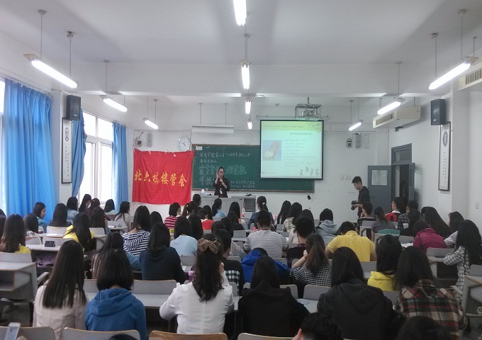 接下来郝颖老师先简单介绍了本次系列活动的具体安排,紧接着进行了精彩纷呈的培训讲座,通过PPT展示,加上精彩的语言组织能力,把老员工的心理活动分析的很是生动。偌大的教室座无虚席,大家聆听老师讲话的时候,有的还若有所思,郝颖老师还积极地跟同学解答一些心理上的问题和疑惑。