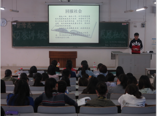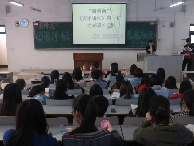 此次《百家讲坛》第一讲之“感恩社会”讲座的举行,寓教于乐,深入浅出,鼓励经济学子将感恩之心转化为实际行动,关爱父母,努力学习科学文化知识,回馈社会。对加强经济学子的思想建设,提升道德涵养并成长为一名合格的老员工有着十分积极的作用。