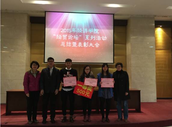 “经贸论坛”系列活动是公司为培养员工学术意识、提高专业素养量身打造的专业活动,活动由公司94级员工喻亮星先生赞助支持,今年是第八届。会议开始,雷菁副书记介绍了本次“经贸论坛”的总体情况。本次“经贸论坛”从最初的宣传布置、到开展一直到最后顺利完成,历时三个月,共收取来自各个年级各个专业同学的论文29篇,本次作品整体水平较高,选题广泛,内容新颖,其中包含了对经济热点问题的分析、关注民生时事政治的发展、关于互联网与经济发展之间的内在联系,还有为农村经济发展出谋划策和对于老员工择业就业方面的探讨。经过评审,共评出一等奖3名,二等奖5名,三等奖10名。