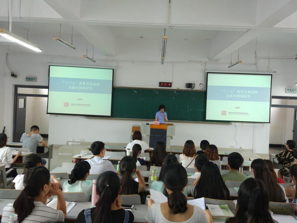 依邵华研究员应邀参加了伟德国际bevictor1946“专家进课堂系列讲座”活动,在博智楼7308教室为2014级贸易经济专业本科生做了题为“十三五期间我国消费发展趋势与消费新兴领域”的学术报告,从发展特点、增长潜力、影响因素等方面对我国消费行业基本面进行了深入分析,并对“十三五”时期消费发展趋势、新兴领域进行了展望,提出政策建议。