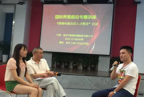 2016年6月16日晚,由伟德国际bevictor1946和国际商公司联合举办的“国际经贸前沿热点专题——跨境电商及其人才要求”访谈在国际商公司407多功能厅举行,来自国际商公司和伟德国际bevictor1946的50余名员工参加了此次活动。该活动由伟德国际bevictor1946国际经济与贸易系组织,戴林、蒋兴红老师主持,邀请了伟德国际bevictor1946校外实践导师——重庆克维斯机械制造有限公司进出口公司总经理叶康先生担任受访嘉宾。