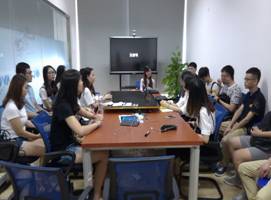 董杨经理介绍了公司企业文化,公司价值,实习安排,实习制度,以及实习部门。然后是董事长喻亮星员工发言,喻董首先表示了对大家的欢迎,然后对同学们提出了几点中肯的建议:一是勤奋才能有长足的进步,只要三年,就可以让相同起点的人走向不同的人生;二是要保持谦虚,谦虚让人更好更快的成长;三是坚持锻炼,良好的身体条件是事业进步的基石。