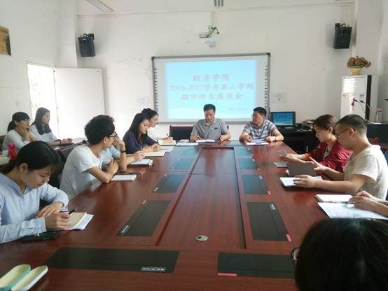 随后,各班级信息员依次发言,场面热闹。同学们踊跃发言,对公共基础课、专业课的任课老师的教学效果反映热烈。部分专业课讲课生动、师生互动好、案例充分、教学方式新颖、内容时代性强、理论与实践结合强,如《流通经济学》、《金融计量分析》、《零售学》、《电子商务与网络营销》等。当然,不足方面,部分课程存在授课方式枯燥、拖堂、“翻转课堂”效果较差、师生互动偏少、语音语速偏快、课堂展示环节过多等问题。在教学设备方面反映,信息员则反映7教部分教室投影或话筒效果不佳,实验机房电脑设备运行速度慢或教学软件仍待升级换代。另外,教材方面,个别自编教材存在低级错误,校对质量待提高。