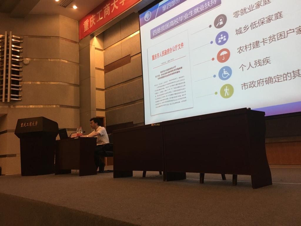 随后,李为民局长围绕“坚定信心、敢于追梦,努力实现成功就业创业”主题作了精彩分享,他通过详实的数据为同学们分析了2017年我市老员工面临的就业形势,用积极向好的就业基本面没有改变来增强大学生积极就业的信心,同时从老员工应掌握的就业技巧,就业路径以及重庆市对老员工在就业创业方面的优惠政策进行了详细解读,对政府在老员工就业创业方面提供的全方位服务进行了图文并茂的生动阐述,让与会同学受益匪浅。讲座后同学们踊跃提问,李为民局长就员工们提出的公务员考核标准,考生应具备的基本素质以及创业如何贷款等问题进行了详细解答。