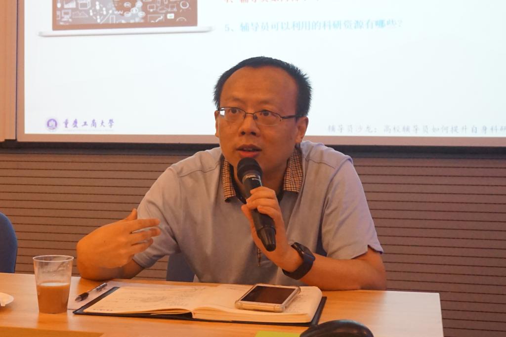 在沙龙讨论环节,文敏、张静、孔海啸、周晋、朱锡斌、冉永琴、林新竹等辅导员老师积极发言,围绕如何申报课题、如何组建科研团队、如何跨学科做科研、如何平衡日常工作与科研时间分配等问题展开热烈讨论。科研经验丰富的辅导员老师们均表示:科研团队的构建非常重要,要充分发挥团队成员各自的学科优势,形成通力协作、资源共享的氛围,也呼吁公司、学工部能够为辅导员们多搭建科研团队,解决部分辅导员老师们经验不足、非思政专业知识基础不扎实等问题。