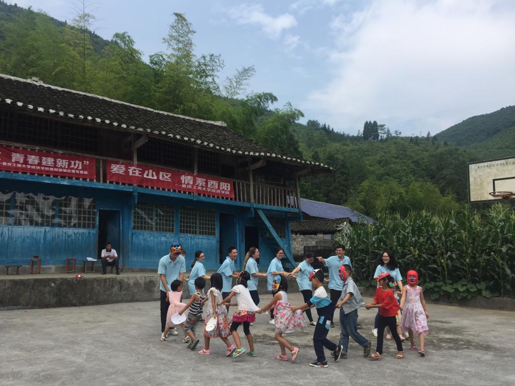 “黑黑的天空低垂,亮亮的繁星相随……”酉阳县兴隆镇营盘村小学简陋的教室里传出孩子们动人的歌声。伟德国际bevictor1946“酉阳兴隆镇营盘村小学‘爱心包裹’志愿者项目”是获得首届重庆市高校志愿服务项目大赛金奖的项目。今年,也是志愿者们来到营盘村小学支教的第五个年头。虽然每月都有爱心包裹送递,但一年不见,孩子们还是怯生生的。在志愿者动听的吉他弹唱中,孩子们逐渐向志愿者们聚拢,志愿者们一句一句教唱,最终大家一起合唱了这首“虫儿飞”,稚嫩的歌声回荡在山间,孩子们认真的神情让志愿者们特别感动。