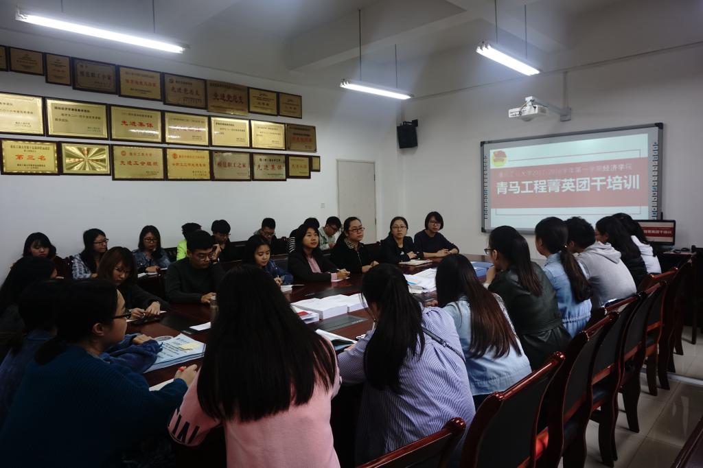 培训期间恰逢十九大召开,为提高共青团员的政治性及先进性,首先,于频副书记带领参与培训的全体成员一起观看了十九大视频,学习了十九大报告内容。随后,于书记对员工干部作了培训,提出了几点要求:第一,要讲团结,讲大局,讲集体主义。员工干部之间要加强沟通和联系,切忌搞形式主义,要构建你中有我我中有你的形态,共同进步和发展。第二,要讲奉献,讲投入,讲兢兢业业。压力对于员工干部而言同样也是一种锻炼,干部本身要稳得住,沉得下,有耐心,摆正心态做好定位,做好自己的本职工作,高标准高要求自己。第三,要讲创新,讲开拓,讲精品工程。员工干部要多思考,多钻研,拓宽自己的视野和思路。举办活动的时候注重质量,向学风建设、专业提升、同学需求等方面下功夫,多总结多反思。