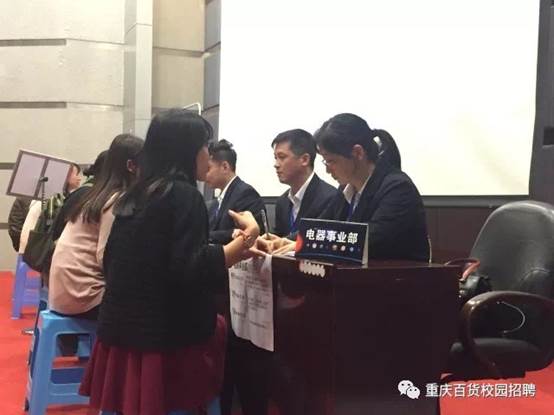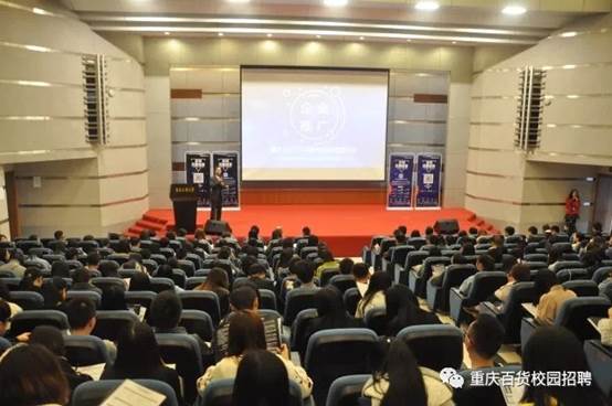 经过前期的宣传与动员,同学们积极响应,踊跃报名,参加宣讲和面试的同学超过500余人,7100大型报告厅座无虚席。第一阶段是宣讲会。商社集团党委副书记王建梅、集团人力资源部副部长(兼重庆百货人力资源部总经理)张泽军先后就重庆商社集团及重庆百货股份有限公司发展概况、2018“星计划”校园招聘活动等进行了介绍,公司优秀员工、重庆百货股份有限公司百货事业部副总经理王欢对学弟学妹们进行了热情洋溢的个人成长的经验介绍。第二阶段是现场面试。参加面试的员工个个英姿飒爽,青春靓丽,使春日的校园显得更有活力。