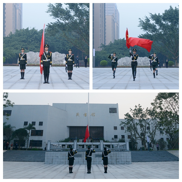 7点40分,升旗仪式正式开始。迎着朝阳,在全体师生的注目礼下,公司国旗班的护旗手们迈着铿锵的步伐护送鲜艳的五星红旗走到国旗台下。在激昂的《义勇军进行曲》中,升旗手干脆利落地挥出国旗,鲜艳的五星红旗冉冉升起,全体师生怀着对祖国的热爱和崇高的敬意,庄重地凝视着红旗。