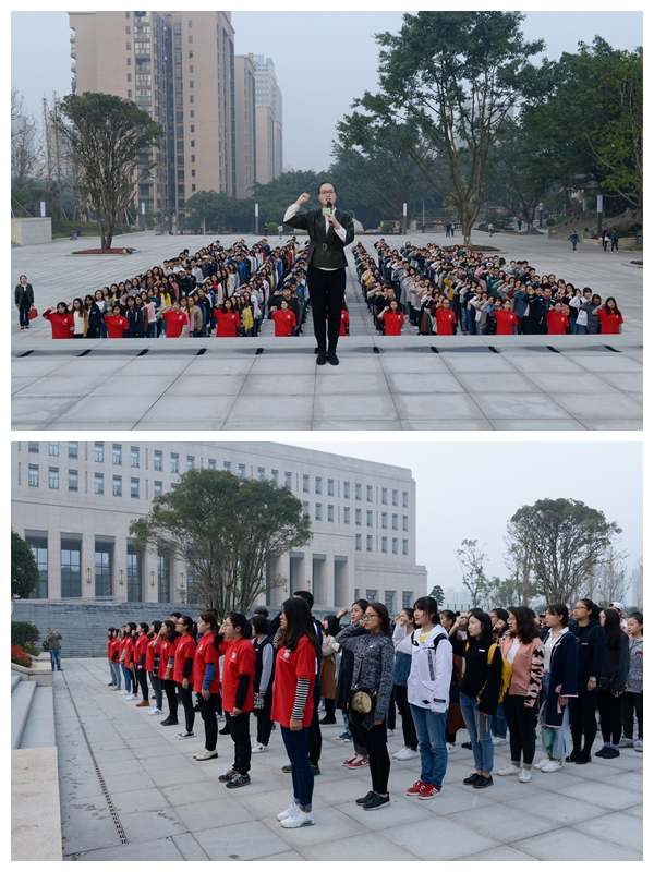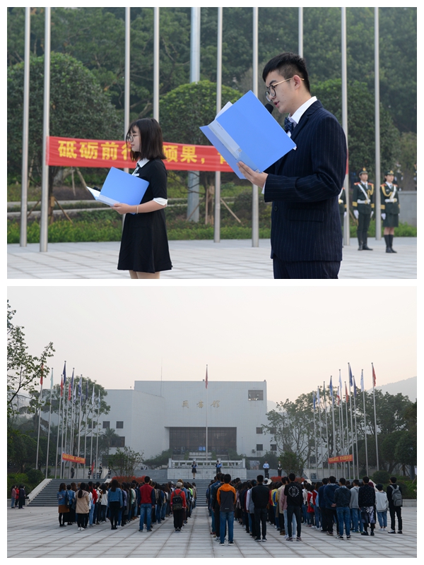 行礼完毕,由经济公司党员服务站站长李晶晶同学带领同学们宣誓。同学们面对庄严的国旗许下铭记“厚德博学,求实创新”的校训,践行“含弘自强,经邦济民”的精神,不忘“肩负责任使命、服务社会人民”的重任,喊出“为祖国富强勤奋学习,为民族振兴奋斗终生”的誓言。