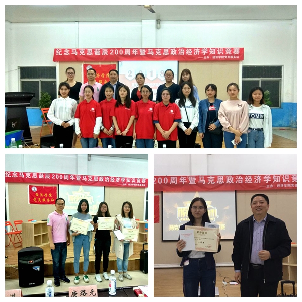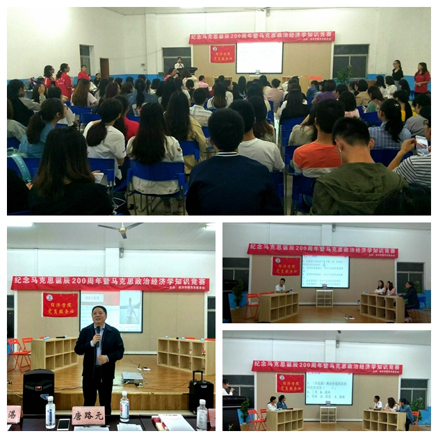 2018年5月31日,为了纪念马克思诞辰200周年,经济公司党员服务站于南岸校区外语活动中心举办了马克思主义政治经济学知识竞赛活动。活动邀请到伟德国际bevictor1946博士生导师唐路元教授,伟德国际bevictor1946分党委于频副书记,员工公寓管理科科长冯湛老师,经济公司党员服务站指导教师郝颖。活动开始前半个小时,现场早已座无虚席,同学们兴致勃勃、热情高涨,而参赛选手们更是摩拳擦掌,信心十足地等待着比赛开始。
