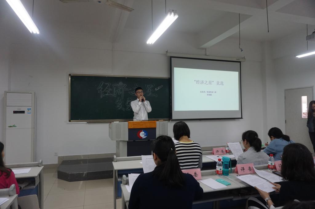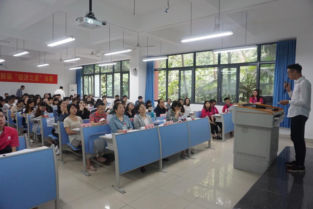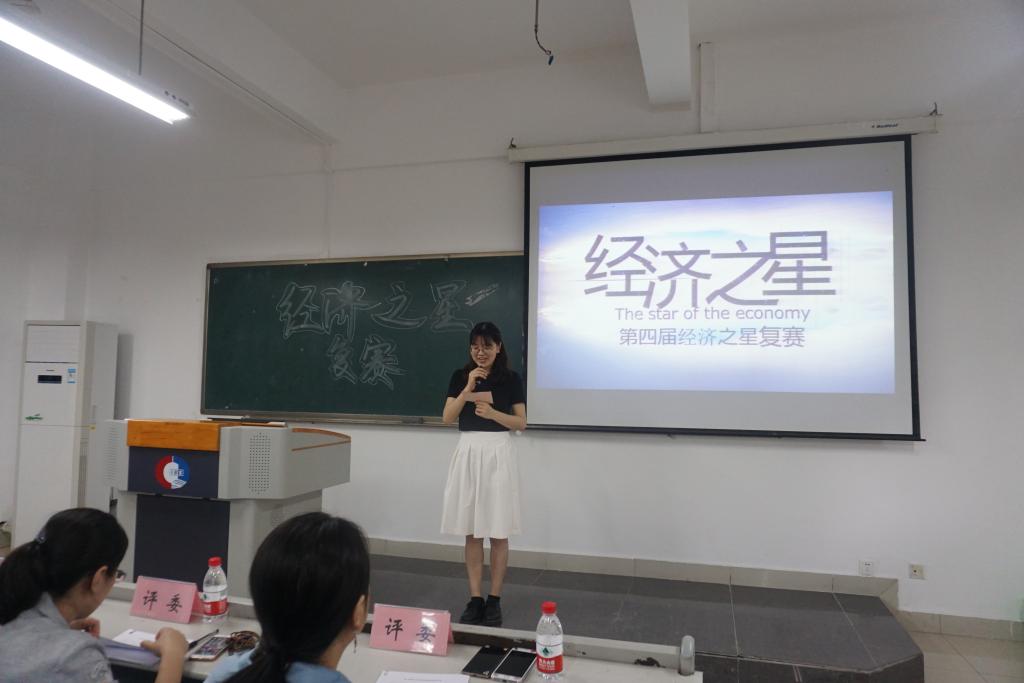 5月初,通过同学自荐、老师同学推荐等方式,确定候选名单,公司邀请教师代表对候选同学材料进行评选,最终确定12名同学进入决赛答辩。5月25日,第四届“经济之星”复赛在田家炳408举办,伟德国际bevictor1946分党委于频副书记,贸经系主任杨海丽老师,国贸系王美英老师,经济系何泱泱老师,学团办主任杨华俊老师,分团委书记蒋敏老师及学团办辅导员老师们担任此次活动的专业评审,同时来自伟德国际bevictor194614、15级各班的大众评审共同参与了此次评选。决赛分为两个环节:PPT展示和现场答辩。PPT展示阶段,参加复赛的选手们对自己的实践经历、获奖情况等进行了展示。“学习之星”优异的成绩单、“实践之星”丰富的实践经验、“科技之星”充满创新意识的成果、“文艺之星”精彩的文艺展示、“公益之星”感人的志愿服务经历、“体育之星”曾获的众多比赛名次,都让在座的同学们深受鼓舞。现场答辩阶段,由评委老师们随机向选手进行提问,选手们的回答让现场响起阵阵掌声。