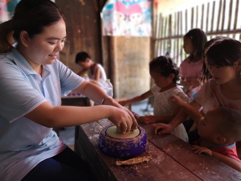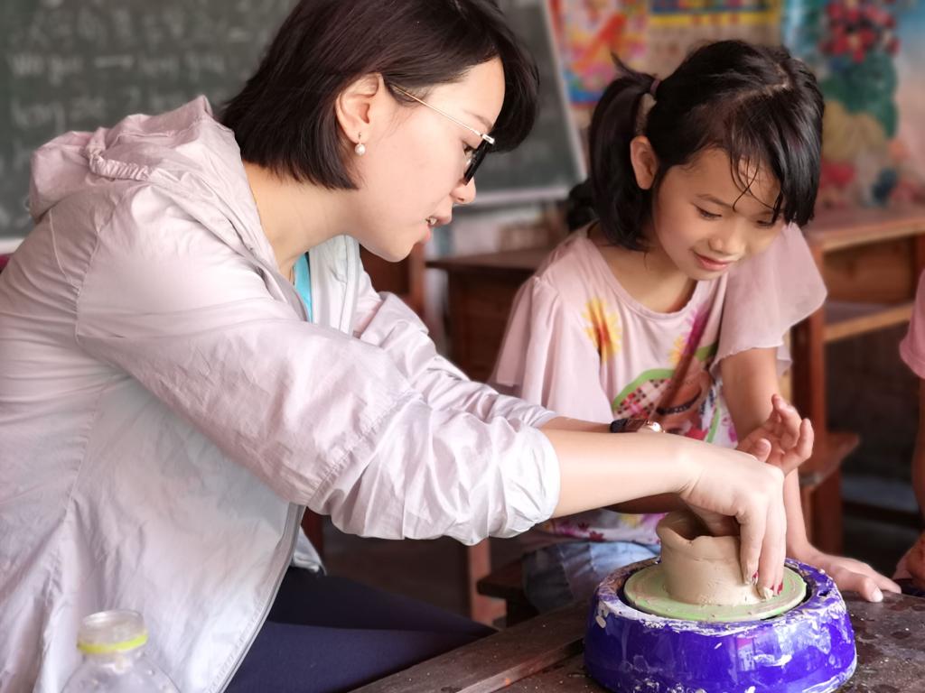 社会实践队成员精心设计这样一个活动,带领孩子完成陶艺作品的制作,旨在培养孩子们对美的感知力及想象力,提高他们的动手能力。实践队员们相信每一个孩子都是天生的艺术家。