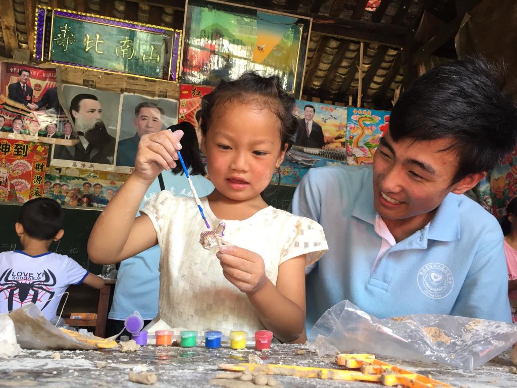 酉阳县兴隆镇营盘村小学,一所走过七十多年的山村复式小学,目前仅有一名女代课老师。伟德国际bevictor1946三下乡社会实践队成员认真学习领会十九大精神,致力于平衡城乡教育资源,让山区的孩子们接受到有质量的教育,精心为他们组织了陶艺制作与绘画创作相结合的美育拓展课程。