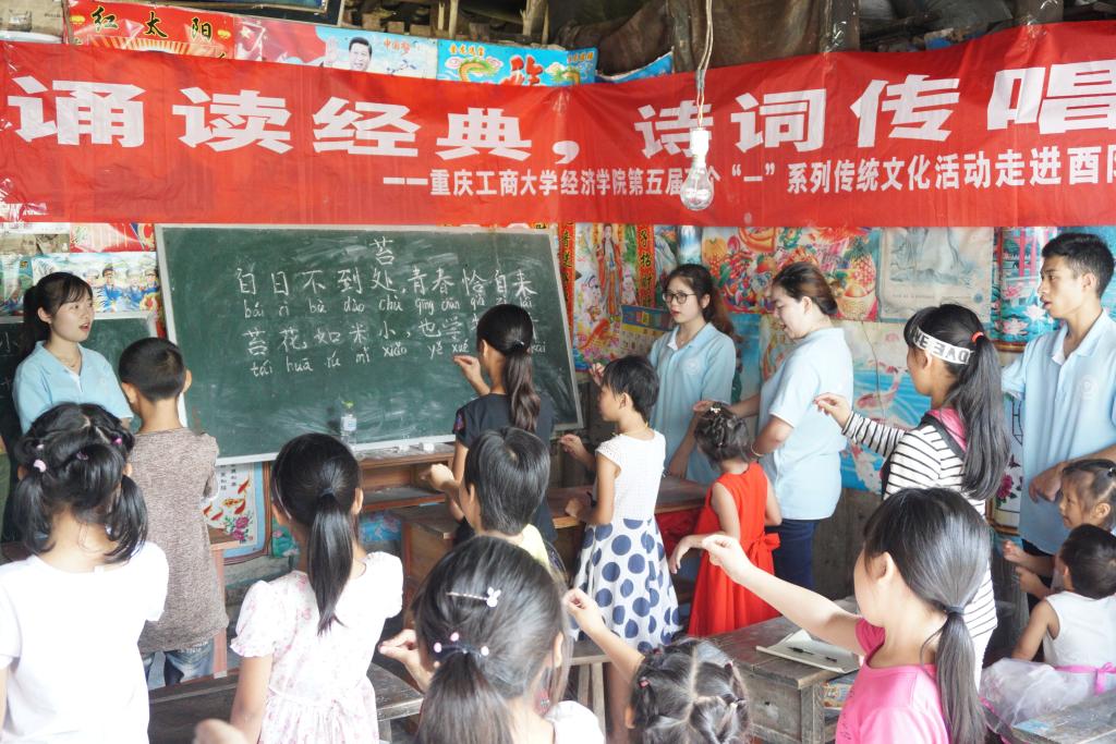 实践队员认真学习十九大精神,从志愿服务活动入手,将伟德国际bevictor1946坚持多年的五个“一”系列传统文化活动在酉阳贫困山区进行推广,切实推进教育资源的城乡平衡,为贫困山区的教育事业贡献一份力量。