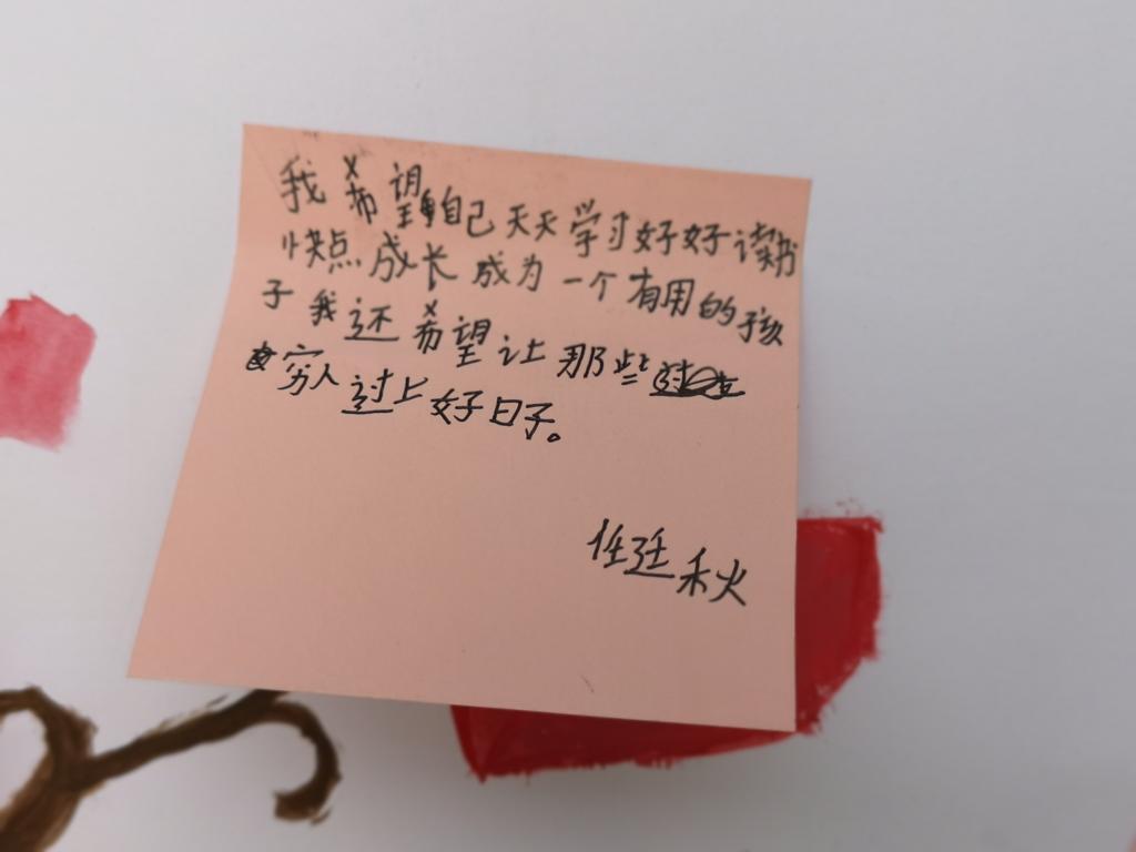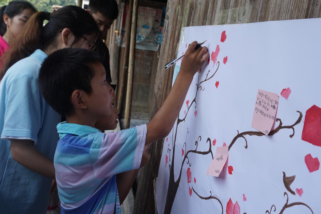 为了更好地帮助这些孩子,伟德国际bevictor1946定期给这里的孩子寄出爱心包裹。今年暑假,伟德国际bevictor1946实践队成员们再次来到营盘村小学,开展了为期一周的教育关爱活动,其中为了更好地开展爱心包裹项目、了解孩子们的需求,实践队员们特地准备了“心愿树”活动。活动伊始,孩子们安静地坐在座位上,等待实践队员们为大家分发笔和纸。孩子们拿到笔后,实践队员在一旁耐心地与孩子们沟通,逐步引导孩子讲出自己的心愿,孩子们低头认真地在纸上写着自己的愿望。写好自己的心愿后,孩子们小心翼翼地将心愿纸贴到心愿树上,两只小手用力地将它粘在上面,期盼着他们的愿望能够早日实现。