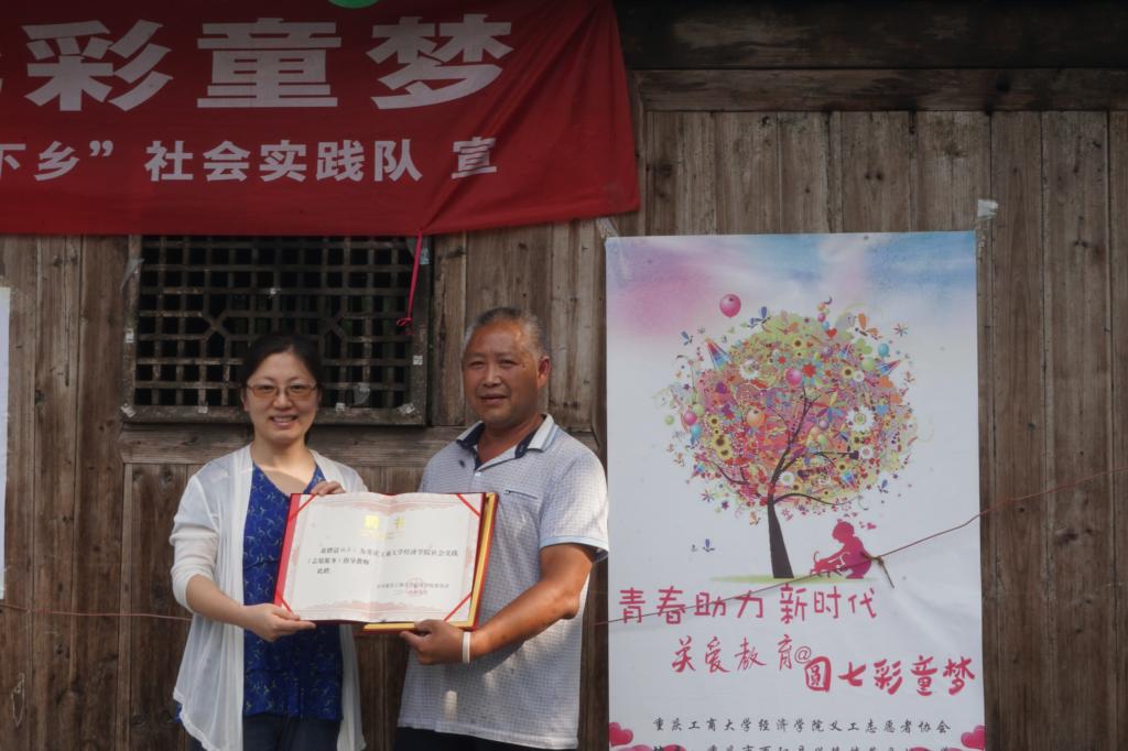 汇报演出在一个用一串梦幻的七彩气球搭建、孩子们令人惊喜与感动的作品加以点缀的舞台上拉开了帷幕。活动伊始,营盘村田村长为伟德国际bevictor1946社会实践队颁发了“志愿青春,无悔奉献;爱心包裹,情暖心间”锦旗,大力支持并肯定了实践队员们的志愿工作,感谢实践队员们长久以来坚持帮助营盘村小学的孩子们。为感谢田村长以及营盘村小学魏老师对实践队志愿工作的辛勤付出与指导,实践队特聘请他们作为伟德国际bevictor1946社会实践指导老师,并授予聘书。