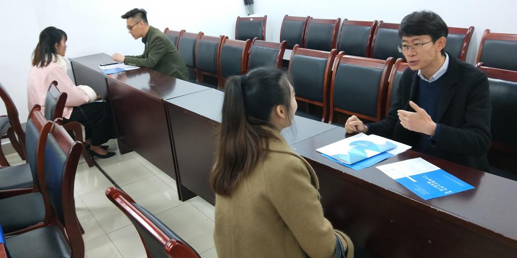 格诺威(中国)咨询公司是一家致力于学习产品设计和培训技术开发的专业技术型咨询机构,为企业提供全价值链的学习项目设计与实施服务,该公司岗位需求与公司国际经济与贸易、贸易经济、经济学、市场营销等专业比较对口。首先,格诺威(中国)咨询公司工作人员放映的宣传片,展示了公司高瞻远瞩、明察秋毫、行动力强、独立作战的鹰文化,以一体两翼(学习技术开发为体、领导力发展和业务提升为翼)为产品系列。随后格诺威工作人员介绍了公司的规章制度、组织结构、工作理念、招聘岗位以及员工成长平台,并为现场的同学们解答疑问。最后,格诺威(中国)咨询工作人员组织了现场面试,员工崔连杰与有意愿深层次了解的同学进行了单独的讲解和探讨。