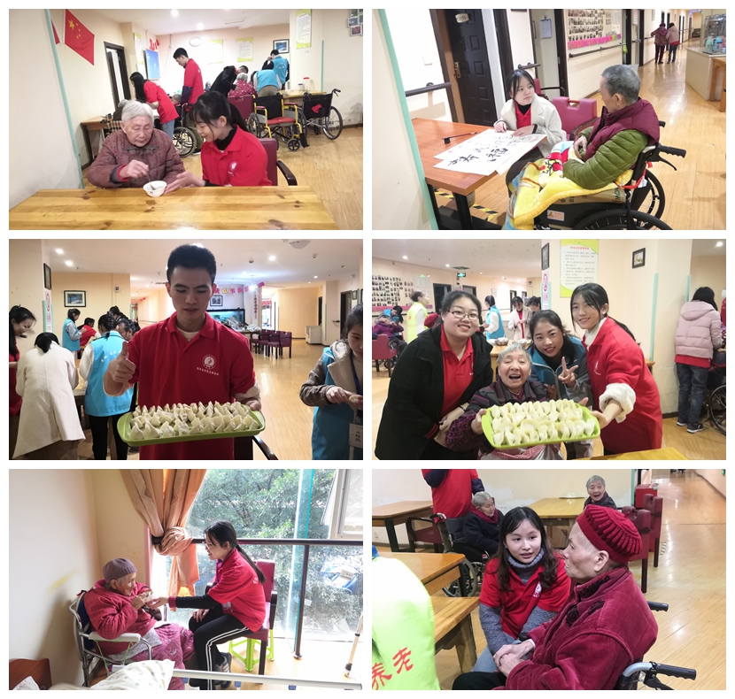 14点30分,经济学子们帮助刚午休完毕的老人们起床、穿衣、带老人们在房间里走动,活动身体。随后,一部分同学陪同老人们的同时,另一部分同学开始为老人们包饺子,煮饺子。在养老院工作人员的介绍和帮助下,同学们都尽量根据老人们的喜好和身体状况进行服务,有的为老人按摩;有的陪老人下棋;有的陪老人唱歌;有的听老人唠家常……。饺子煮好后,伟德国际bevictor1946的同学们便为老人们盛好饺子并喂老人们吃。伟德国际bevictor1946党员服务站成员热情洋溢,对老人们关心体贴,老人们脸上也都洋溢着幸福的微笑,同学们也满心欢喜。16点30分,此次聚福岛养老院志愿服务活动圆满结束。