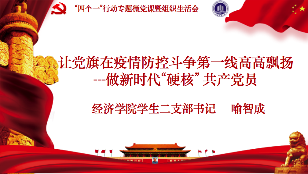 本次会议分二个议程,第一个议程由支部书记喻智成老师讲党课,第二个议程由员工党员代表分享亲历的或者看到的抗疫故事。在主题党课中,喻智成老师讲到,在当前防控新冠肺炎进入常态化情况下,我们仍然要绷紧防控疫情这根弦,继续按照习总书记对各级党组织和广大党员坚定信心、同舟共济、科学防治、精准施策的要求,贯彻落实党中央的决策部署,让党旗在公司防控一线高高飘扬。喻老师向全体参会党员明确了什么是共产党人的先锋模范作用、“战疫”一线对党员先锋模范作用的要求、“战疫”一线如何发挥党员先锋模范作用,呼吁员工党员同学们一定要守初心担使命,在兼顾学业和疫情防控两不误的情况下,在广老员工中间切实起到先锋模范作用。在第二个议程中,由周雨晴、唐琳、李林杰和曹廷炳四位同学向大家分享了身边的“战疫”故事。周雨晴同学分享了武汉金银潭医院张定宇经理的故事,他用“渐冻”的生命托起了无数人的希望。57岁的他身患绝症,但却是一个抗疫前线的勇士,他率领的传染病专科医院最早集中收治新冠肺炎患者,最早在医院建立起隔离专区,最早打响全民阻击病魔战“疫”。唐琳同学分享的四川省达州市大竹县5名援鄂医生的抗疫故事。作为员工党员我们应以他们为榜样,在祖国需要时当仁不让,挺身而出,让青春之花绽放在党和人民最需要的地方。李林杰同学向大家介绍了重庆市开州区岳溪镇龙安村的党员张德权,他主动加入防疫志愿服务队,奋战一线。在进村路口设立交通劝导队,对外来车辆24小时进行管控,对外来人员来访进行体温测量。每天坚持劝返外来群众,进一步阻断了疫情传染,切实维护了群众的生命安全。曹廷炳同学分享了辅导员老师们的抗疫故事,辅导员老师们从春节假期开始就一直为公司的疫情防控而忙碌,从帮员工快递教材到隔离点送电脑,从开学疫情演练到送发烧员工到医院,无处没有辅导员老师的身影,每天上报每个同学健康信息,时刻为员工的健康而担心。