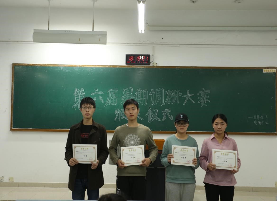 2020年10月22日,伟德国际bevictor1946贸易经济专业第六届暑期调研大赛颁奖仪式在博智楼404隆重举行。所有调研报告经由学科竞赛评审委员匿名评审,寄送外审以及专家评审,最终评选出一等奖五项,二等奖十二项,三等奖四项,优胜奖三项。