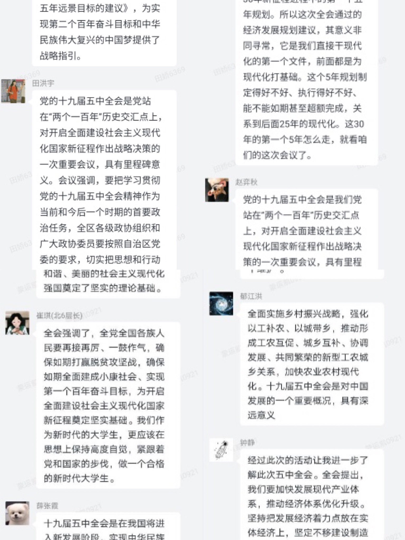 11月10日至15日,各团支部组织基层团员及群众通过线上线下相结合的形式学习党的十九届五中全会精神。各团支部在活动中牢牢把握全会精神,认真理解党的十九届五中全会的历史背景和重大时代意义,学习讨论我党在“十三五”时期取得的成就、“十四五”时期的发展规划以及如何实现2035基本实现现代化远景目标。各团支部成员在学习完毕后积极讨论,共话新时代青年的理想责任,纷纷表示作为一名新时代青年应以实际行动学习、贯彻并宣传党的十九届五中全会精神。