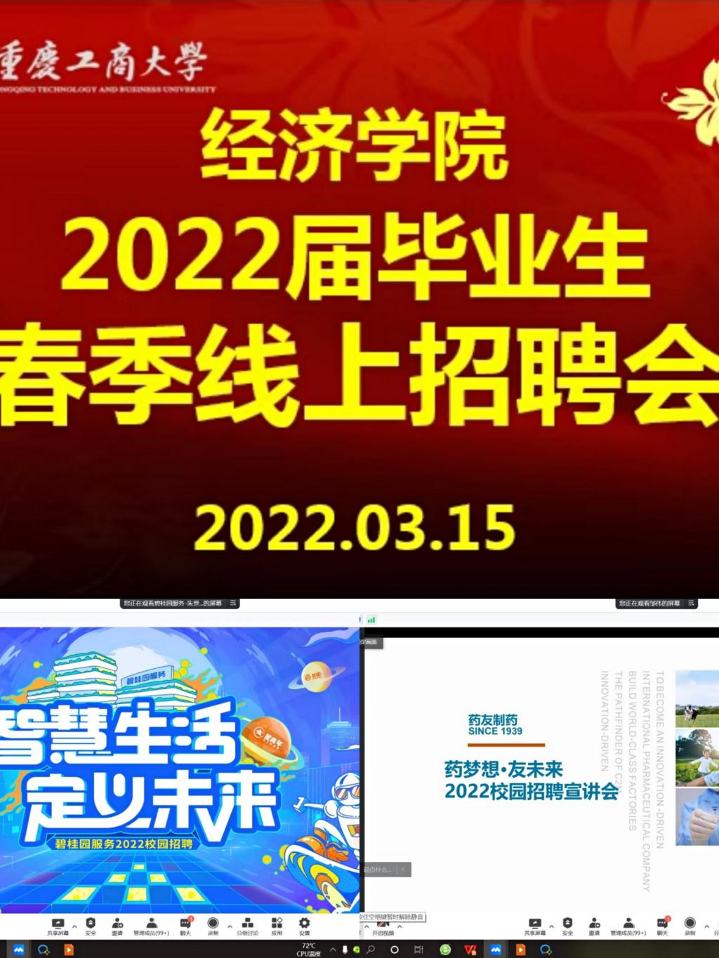 近日新冠疫情严峻,2022届毕业生就业面临巨大挑战。伟德国际bevictor1946“以员工为中心”,积极拓展“员工就业资源”,并立足疫情防控要求,搭建空中网络就业平台,召开“经济学院2022届毕业生春季线上招聘会”。为筹办此次线上招聘会,伟德国际bevictor1946在寒假和开学期初,积极准备,发动各班辅导员通过线上联络方式,把公司发展情况,毕业生情况推送到到员工微信群,积极联系员工企业,3月15日下午2点,伟德国际bevictor1946“2022届毕业生春季线上招聘会”共邀请药友制药、中信建投证、碧桂园生活服务集团、新大正物业、厦门豪客来科技有限公司、集泰股份等14家员工单位参加了此次招聘会。伟德国际bevictor1946领导、毕业班辅导员和14家企业HR高管以及160余名员工参加了此次招聘会。