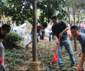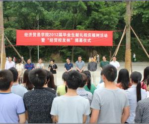 今日离校苗,明年桂花香。2012年5月17日下午4点,经贸公司2012届毕业生献礼校庆植树活动暨“经贸员工林”揭幕仪式在南岸校区举行。党委副书记朱伯兰,党委副书记、纪委书记周航,党政办公室、校庆办、校团委领导,经贸公司全体院领导、辅导员老师以及往届员工代表和2012届毕业生代表出席了此次揭幕仪式。