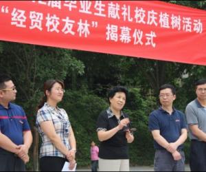 在揭幕仪式现场,朱伯兰副书记和周航副书记为“经贸员工林”揭幕。师生一起动手植树,借此机会向母校60周年华诞送上祝福。