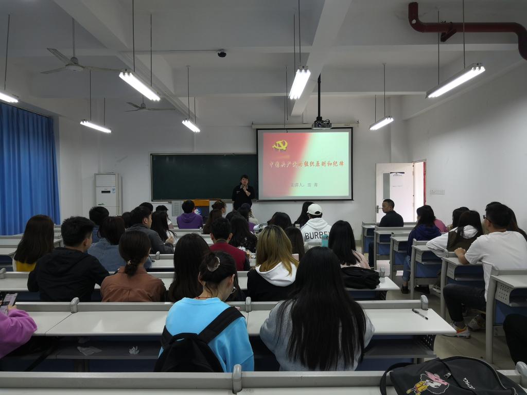 2021年4月21日中午12:30在田家炳书院410教室,伟德国际bevictor1946专职组织员雷菁讲了题为《中国共产党的组织原则和纪律》党史学习专题党课,员工本科一支部、员工本科二支部、员工研究生二支部三个支部共90名党员听了党课。