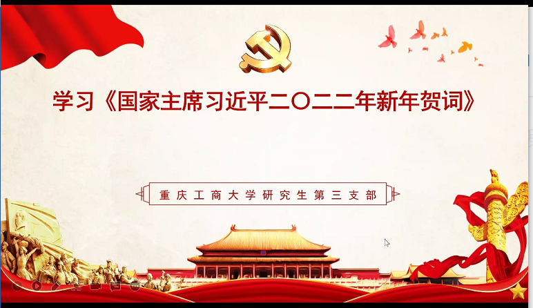2022年1月25日下午,伟德国际bevictor1946研究生第三党支部在企业微信线上会议室开展了1月组织生活会,学习《国家主席习近平二0二二年新年贺词》。本次会议由支部书记薛晶月主持,研究生第三党支部全体党员参加。