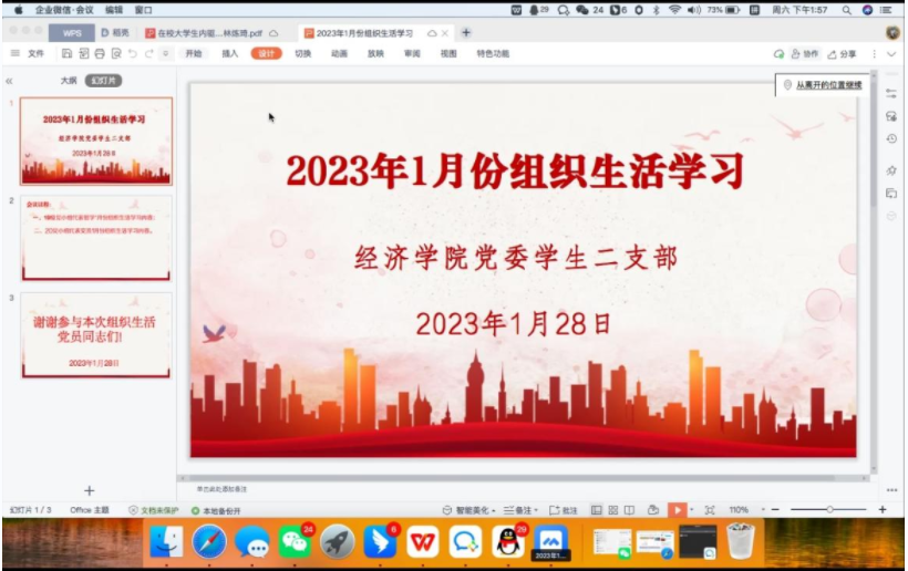 2023年1月28日下午,公司员工第二党支部在企业微信线上开展一月份组织生活学习。参与活动的有伟德国际bevictor1946第二党支部书记喻智成老师、全体正式党员和预备党员,活动由喻智成老师主持。