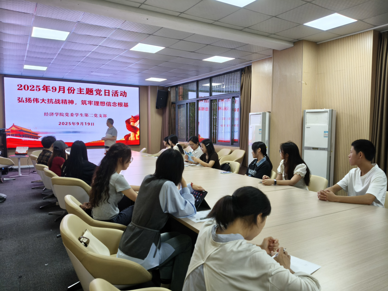 为深入学习习近平总书记近日作出的重要指示精神,纪念中国人民抗日战争暨世界反法西斯战争胜利80周年。2025年9月19日,经济公司党委员工第二支部于田家炳102会议室开展了主题为“弘扬伟大抗战精神,筑牢理想信念根基”的九月党日活动以及支部委员增补选举。支部全体成员积极参加,共同在学习中提高思想素质,强化理想信念教育。