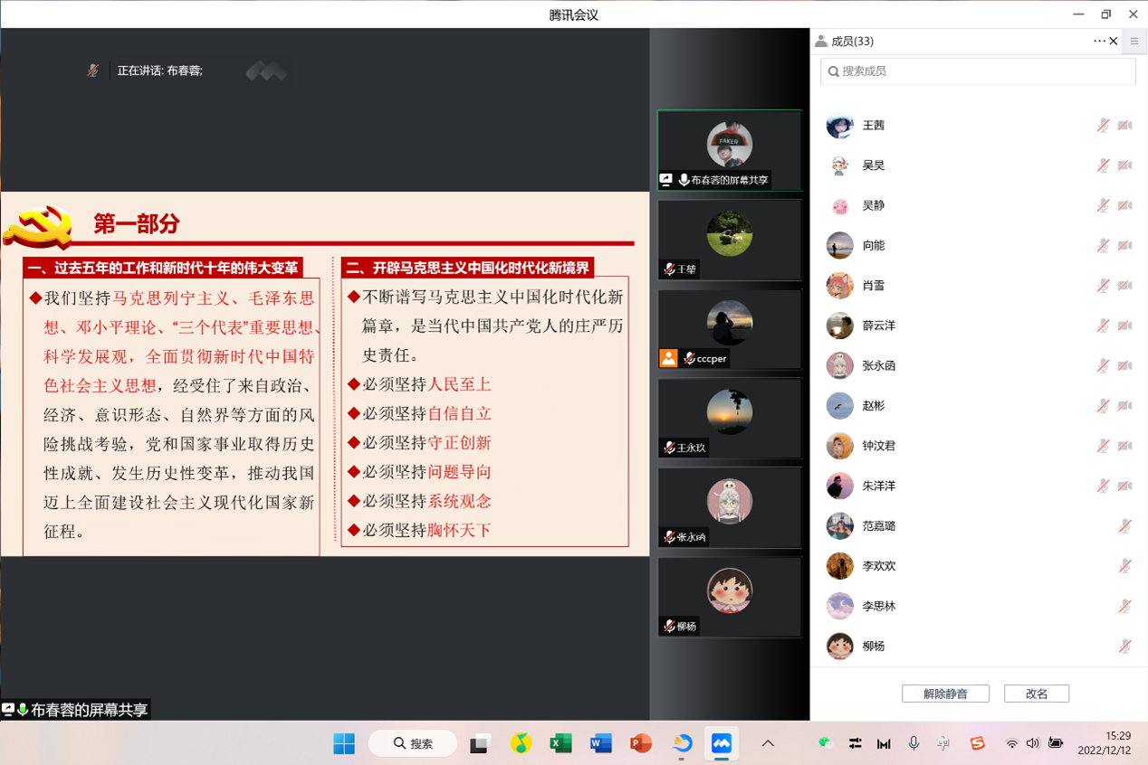 12月12日,经济公司党委研究生第一党支部在线上召开十二月组织生活会,此次活动由支部屈彩萍同志主持,支部全体党员参加。
