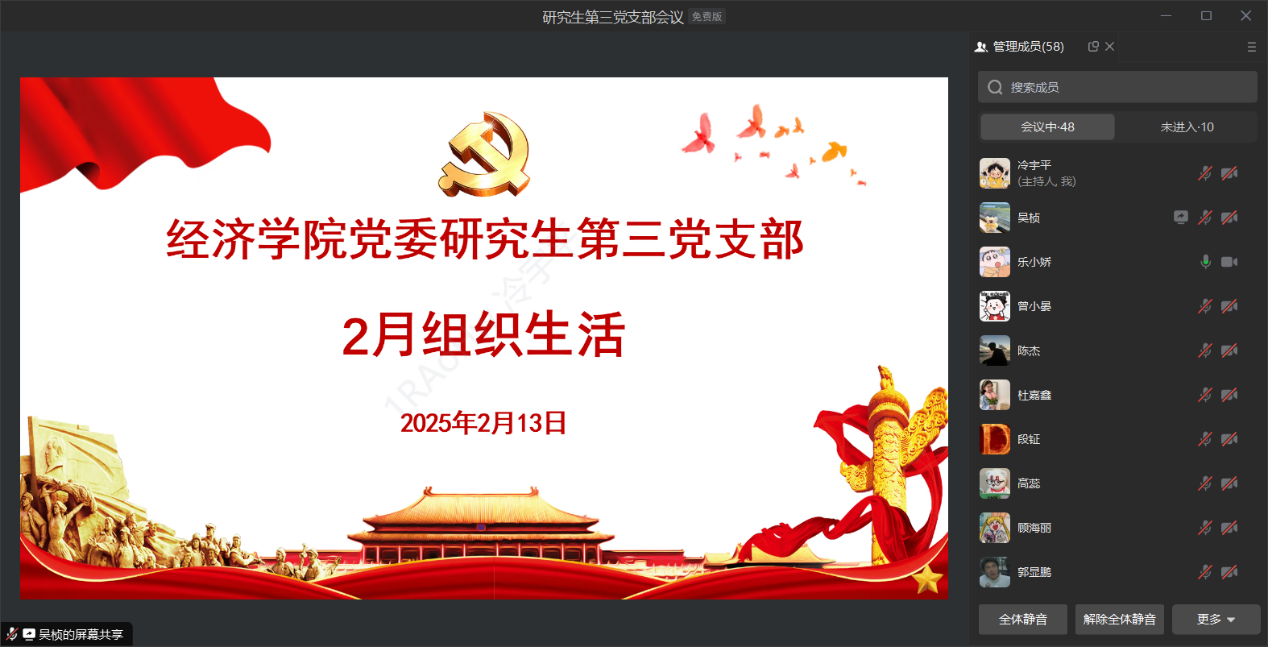 2025年2月13日,经济公司党委研究生第三党支部通过企业微信线上开展2月组织生活。支部党员围绕习近平总书记重要文章《进一步全面深化改革中的几个重大理论和实践问题》(《求是》2025年第2期)进行学习和研讨。