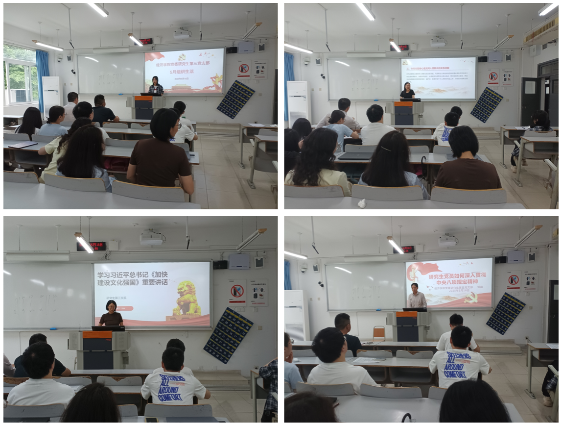 2025年5月16日,经济公司党委研究生第三党支部在博智楼310教室开展5月组织生活,学习活动由宣传委员乐小娇主持。