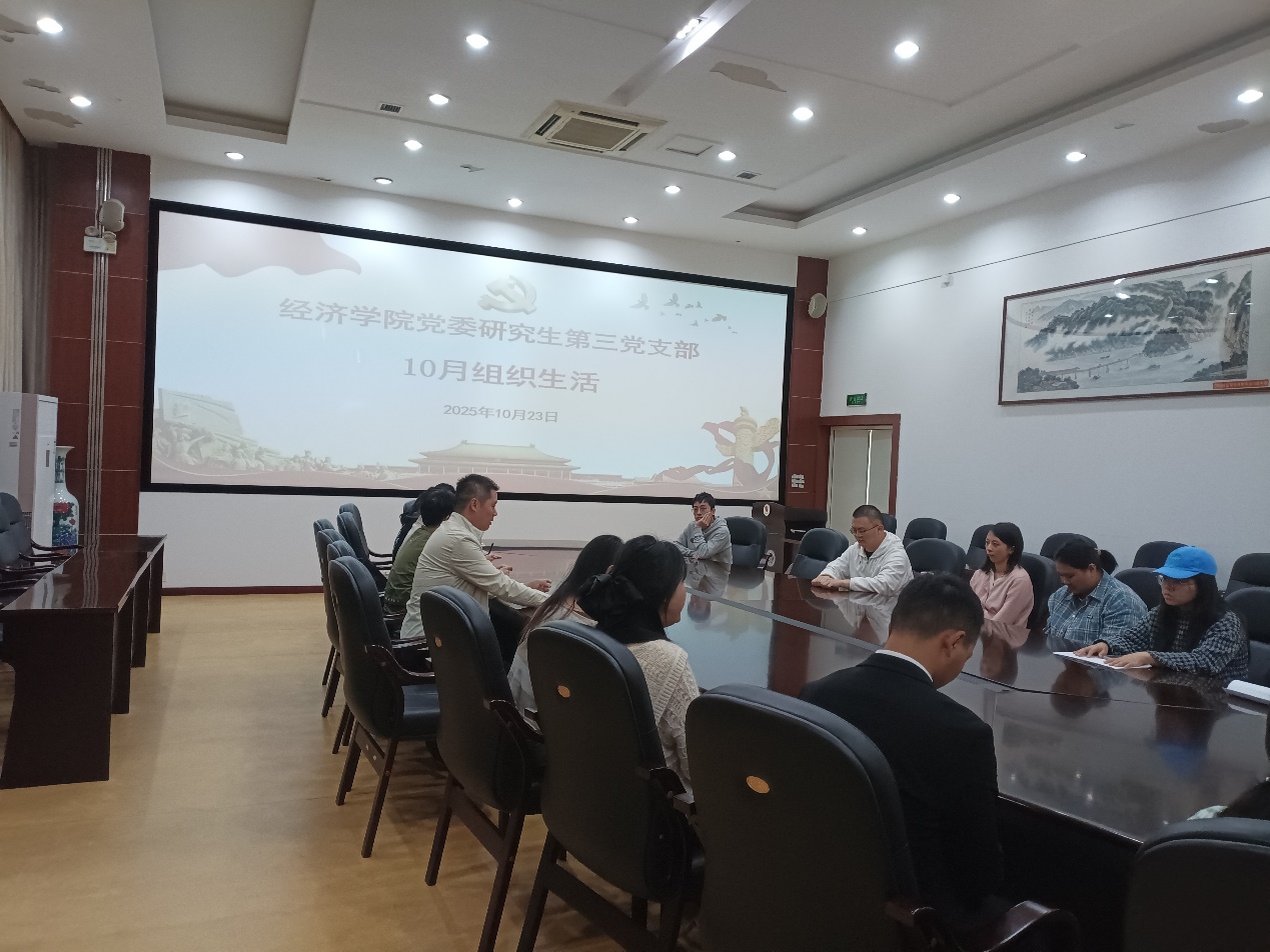 2025年10月23日,经济公司党委研究生第三支部在田家炳书院6楼会议室开展10月组织生活,会议由支部书记刘晗主持。
