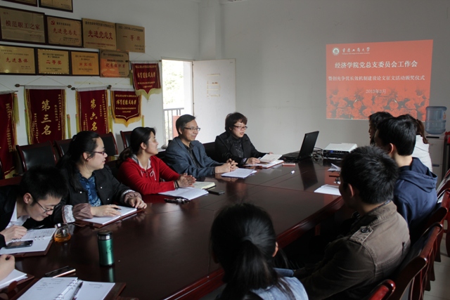 2013年3月13日下午,“经济公司党总支委员会工作会暨创先争优长效机制建设论文征文活动颁奖仪式”在田家炳404召开。参加此次会议的有经济公司党总支张筱路书记、党总支雷菁副书记,陈新力经理、各总支委员和支部书记等。