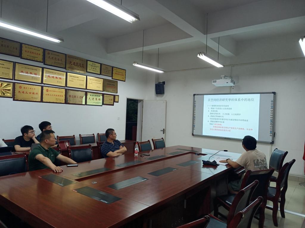 2018级研究生彭卓向大家分享了空间经济研究的非主流学派—地理政治经济学的主要内容:地理政治经济学在空间经济研究学科体系中的地位、地理政治经济学研究的核心问题、地理政治经济学与主流政治经济学的冲突与融合以及地理政治经济学未来的理论突破方向等。随后,陈纪平教授向员工提问并讲解了非主流学派的含义,许岩老师就“区域经济学、经济地理学、空间经济学”等学科的划分发表了自己的一些看法。