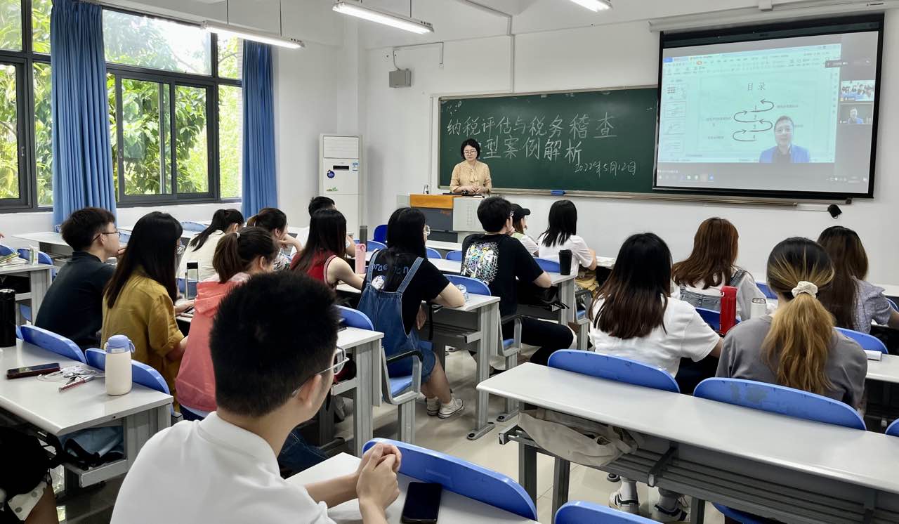 主讲人杨剑林老师从事税务工作15年,先后在重庆市黔江税务局和第三稽查局工作,经历了税款征收、税源管理、纳税评估、纳税服务、税务稽查等七八个岗位,办理各类税收案件上百起,为国家挽回税款损失上亿元,具有丰富的实战经验。杨老师凭借自己多年积累的经验和丰富阅历给同学们讲解了税收、纳税评估与税务稽查相关基础知识,具体分析了“虚开发票骗取留抵退税案”和“黄薇偷逃税”两个典型案例。同时杨老师善于总结并乐于分享工作经验,此次主讲的纳税评估与税务稽查内容也深受同学们好评。